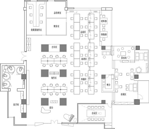 ▄設(shè)計風(fēng)格定位: 此案例要求簡約、時尚,所以應(yīng)盡量利用簡潔的建筑手法,避免采用過去的造型,繁瑣的細部裝飾,過多過濃的色彩點綴。頂面采用礦棉板吊頂,地面采用米黃色地磚鋪貼,隔斷統(tǒng)一使用透明玻璃加磨砂,所有的隔斷都沒有隔到頂,整個辦公空間顯得更寬敞明亮。我們應(yīng)該創(chuàng)造性的解決客戶的要求,營造一個符合企業(yè)品質(zhì)并且是舒適、健康、富有人性的辦公環(huán)境,使企業(yè)的精神文化在各個角度體現(xiàn)出來。